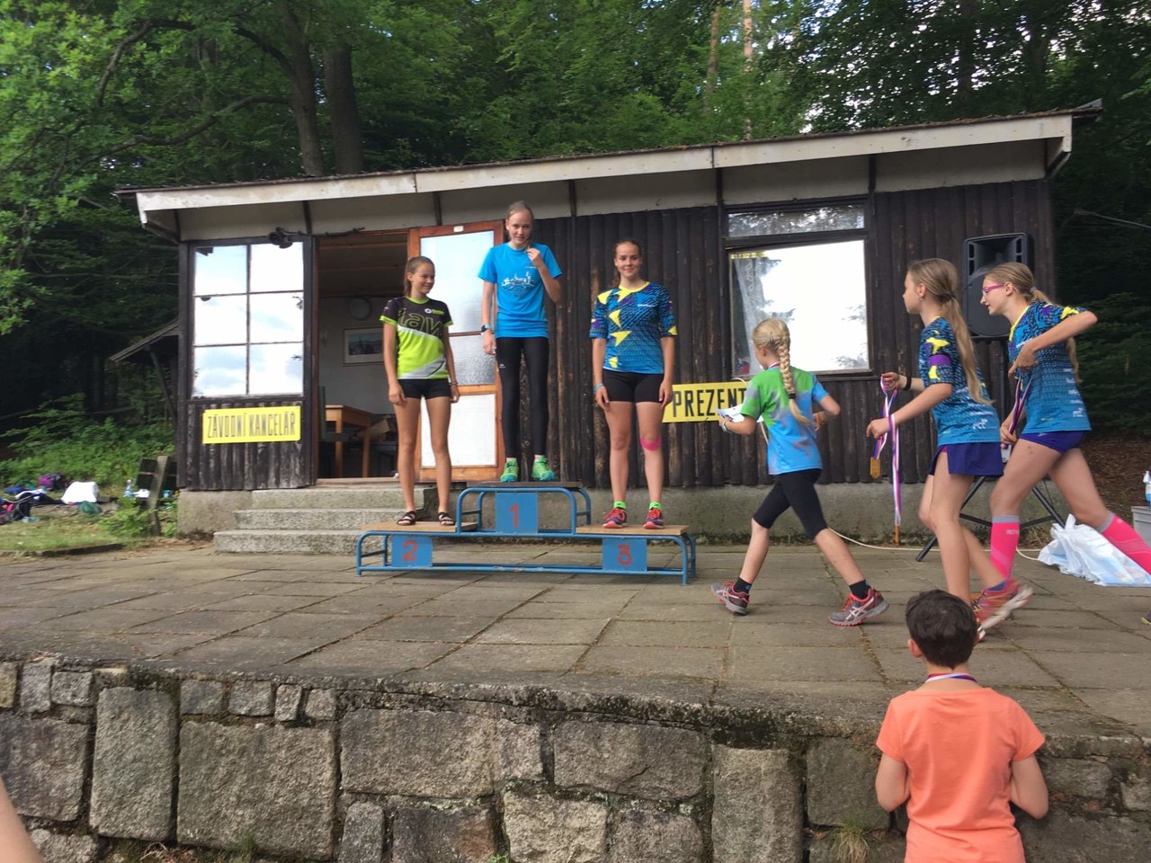 Poděkovat musíme aktivitě našich členů, kteří zajistili pěkné ceny. Vyhlašování výsledků ve vzduchovce se tím trochu protáhlo, protože si pro drobné ceny nešla jen plánovaná celá přípravka, ale i všichni účastníci z žactva A a dokonce i B. Desítky kusů powerbanek, krásná kniha o Jizerské padesátce a nějaké ty pozdní sběry (to jako taháček pro Moraváky) určitě potěšily ty, kteří stáli na bedně. A každý, kdo na bedně stál, si to skutečně zasloužil - nebývale vynikající střelby a tradičně skvělí běžci neumožnili ostatním získat kýžené body do republikového žebříčku, kvalita mnoha klubů v této části Čech je neoddiskutovatelná! To k nám zase moc Moraváky nepotáhne :-). Ale musíme dodat, že vyhlašování vzduchovky se sice kvůli množství cen trochu protáhlo, ale začalo o půl hodiny dříve, protože nové měření časů počítačovým programem se osvědčilo (Díky, Luboši!).